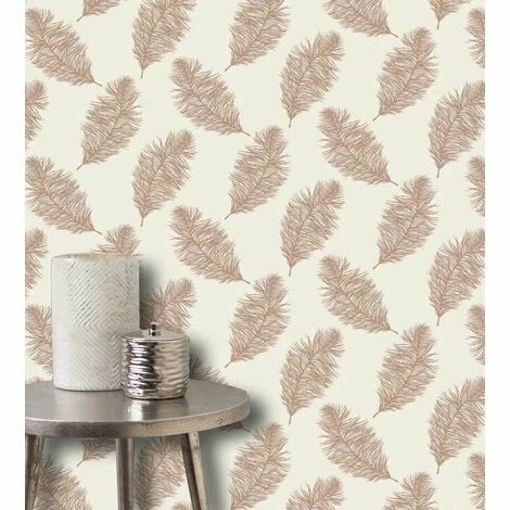 The Holden Décor Fawning Feather Cream/Rose Gold Metallic Wallpaper is an easy way to add a dash of colour to your walls. This striking wallpaper is sure to make a welcome addition to your home. Features a flat design which is overlaid with a timeless feather design to really make it stand out. A neutral cream and Rose Gold colour scheme add a hint of glamour to complete the look.