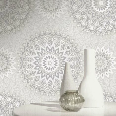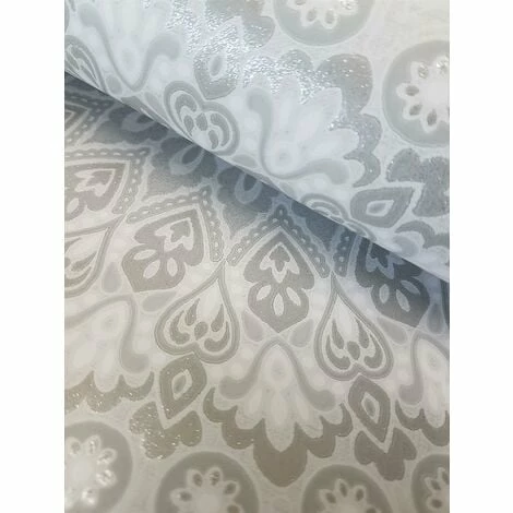 The Holden Decor Glitter Medallion White/ Silver Wallpaper is an easy way to add a dash of colour to your walls. This striking wallpaper is sure to make a welcome addition to your home. Featuring an Aztec inspired geometric pattern in shades of white, silver and grey infused with dense sparkling metallic glitter for a truly mesmerising wallpaper.