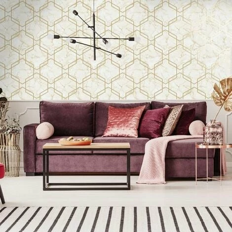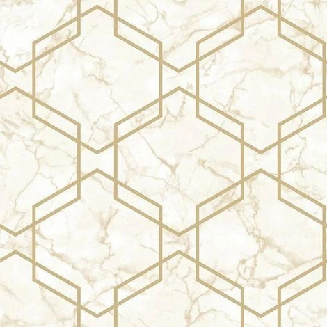 The Holden Decor Hexagon Geo Marble Beige / Gold Wallpaper is an easy way to add a dash of colour to your walls. This striking wallpaper is sure to make a welcome addition to your home. Featuring a superb gold glitter hexagon pattern wallpaper on a beige marble effect background for a truly mesmerising wallpaper.