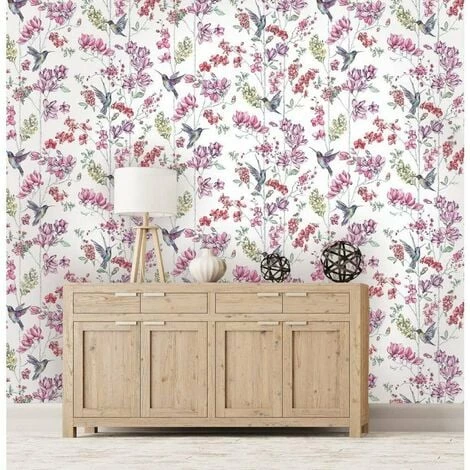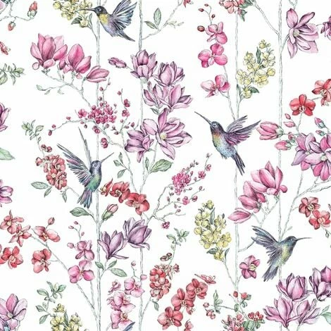 This wallpaper by Holden Decor shows a beautifully drawn and painted multicolour floral design featuring elegant hummingbirds. This high quality wallpaper could be used to create a feature wall or to decorate an entire room. Additional Product Information: Pattern Repeat: 26.5cm Pattern Match: Offset Match Wallpaper Type: Paper Wallpaper Finish: Flat Durability: Washable Roll Length: 10m Roll Width: 53cm Roll Coverage is 5.3 Square Metres Application: Paste the Paper