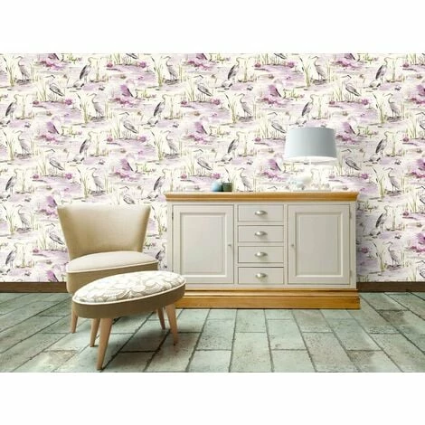 The Holden Tancho Non-Woven Heather/ Lime Wallpaper is an easy way to add a dash of colour to your walls. This striking wallpaper is sure to make a welcome addition to your home. Featuring an all over pattern of stylised oriental storks with a watercolour painterly effect with mica accents and set on a white background for a truly mesmerizing wallpaper.