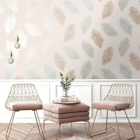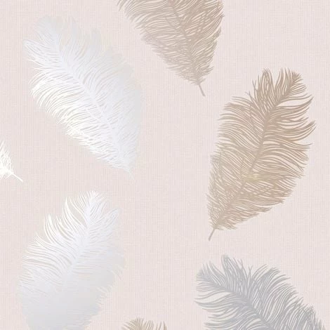 The Holden Decor Astonia Feather Blush Pink Wallpaper is an easy way to add a dash of colour to your walls. This striking wallpaper is sure to make a welcome addition to your home. Featuring a feather design with rose gold and silver metallic feathers running throughout set on a textured pink background complemented by all-over glitter highlights for a truly mesmerising wallpaper.