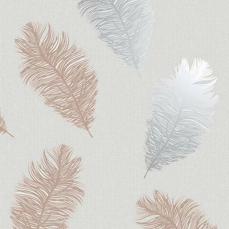 The Holden Decor Astonia Feather Grey Wallpaper is an easy way to add a dash of colour to your walls. This striking wallpaper is sure to make a welcome addition to your home. Featuring a feather design with rose gold and silver metallic feathers running throughout set on a textured grey background complemented by all-over glitter highlights for a truly mesmerising wallpaper.
