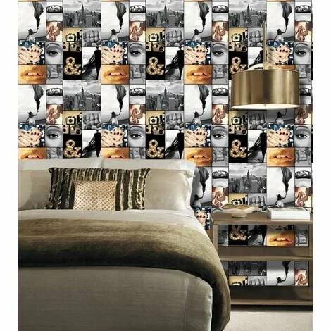 The Holden Glitz Wallpaper is an easy way to add a dash of colour to your walls. This striking wallpaper is sure to make a welcome addition to your home. Featuring a photo collage of lips, shoes, camera’s, a city skyline and more! With glitter highlights for a truly mesmerising wallpaper.