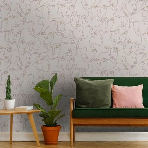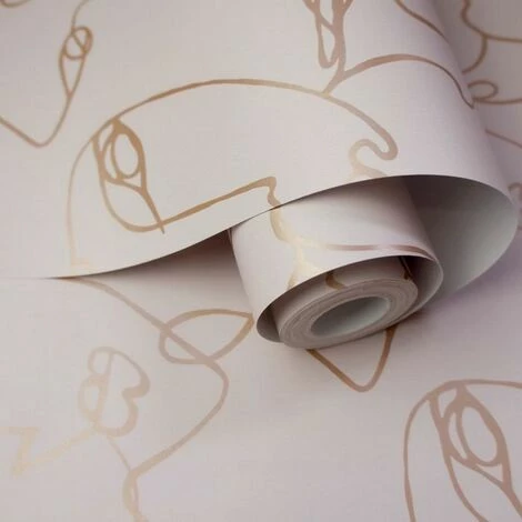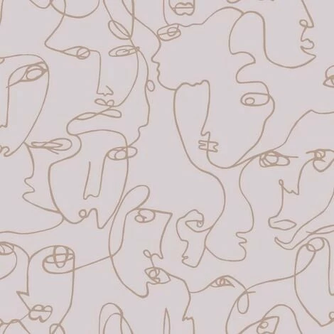 Design: Abstract, Faces, Metallic. Design Repeat: 53cm. Easy Application, Offset Pattern Match, Paste the Paper.