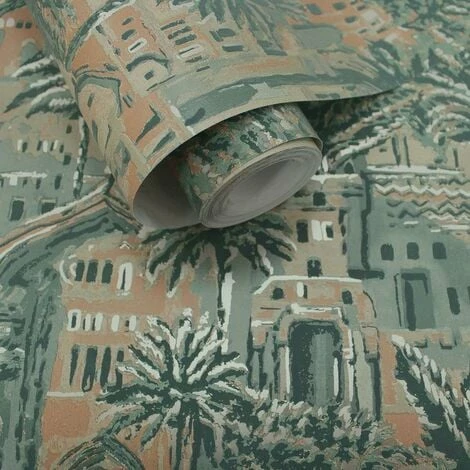 Material: Eco Foam, Paper. Width: 53cm. Length: 10m. Design: Houses, Metallic, Trees. Design Repeat: 53cm. CFC Free, Chlorine Resistant, Durable, PVC Free, Solvent Free, Water-Based Ink. Easy Application, Easy To Remove, Offset Pattern Match, Paste the Wall. Sustainability: Environmentally Friendly. Finish: Textured.