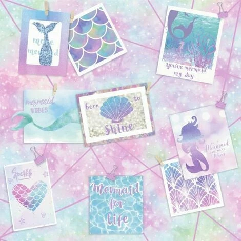 Design: Geometric, Iridescent, Mermaid, Spotted, Stars. Design Repeat: 53cm. Easy Application, Offset Pattern Match, Paste the Paper. Finish: Glitter, Textured.