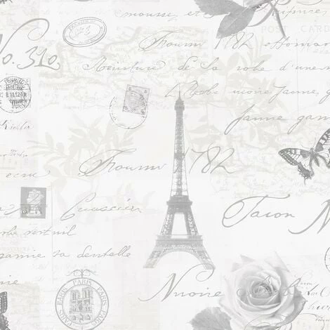 Material: Paper. Design: Eiffel Tower, Postcard, Roses, Stamp. Design Repeat: 53cm. Easy Application, Good Lightfastness, Offset Pattern Match, Paste the Paper. Heavyweight.