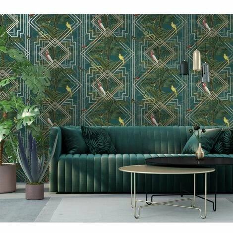 Design: Animals, Geometric, Palm Leaf, Tropical. Design Repeat: 32cm. Easy Application, Offset Pattern Match, Paste the Wall. Finish: Metallic.