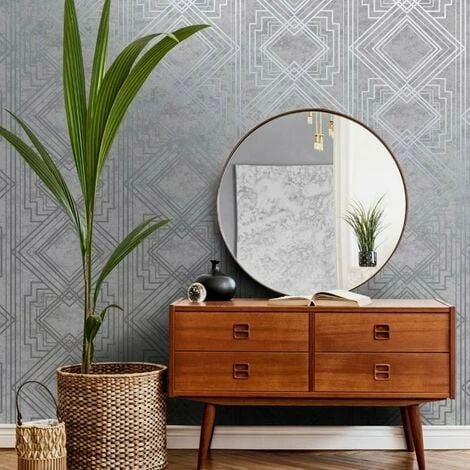 Design: Geometric. Design Repeat: 64cm. Easy Application, Offset Pattern Match, Paste the Paper. Finish: Matte, Metallic, Smooth, Textured.