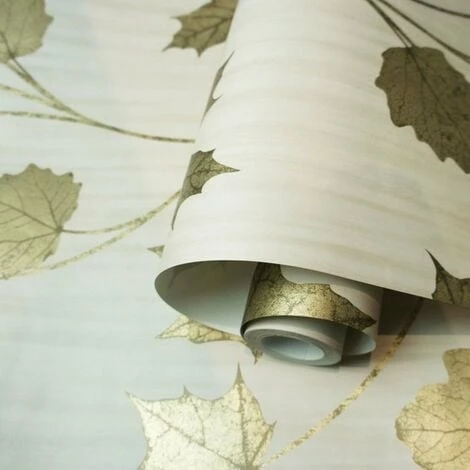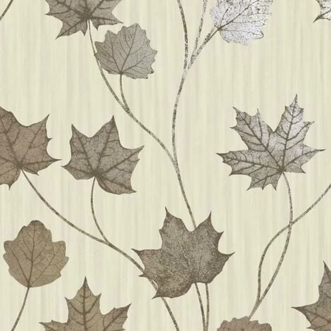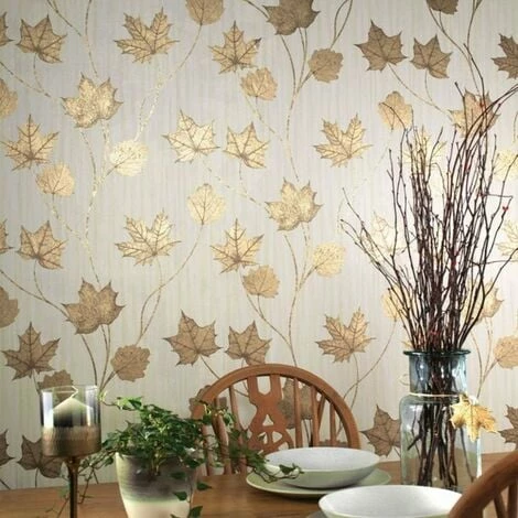 Material: Paper. Design: Maple Leaf. Design Repeat: 53cm. Easy Application, Offset Pattern Match, Paste the Wall. Finish: Metallic.