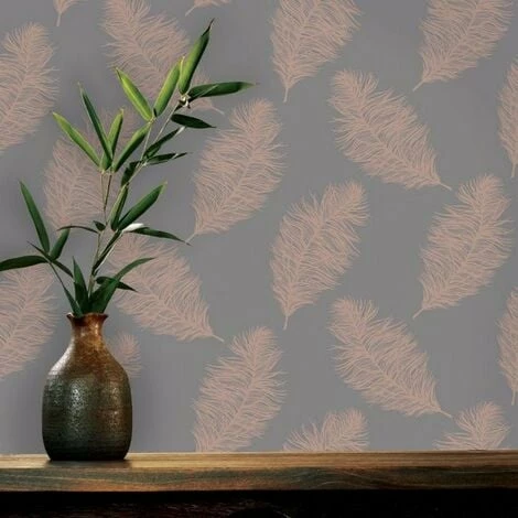 Design: Contrast, Feather. Design Repeat: 17.6cm. Easy Application, Offset Pattern Match, Paste the Paper. Finish: Matte, Metallic, Smooth.