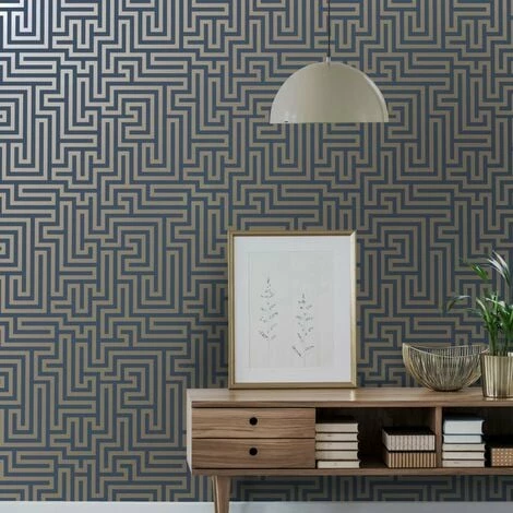 Design: Geometric, Greek Key Pattern, Maze, Metallic. Design Repeat: 53cm. Easy Application, Paste the Paper, Straight Pattern Match. Finish: Matte, Smooth.