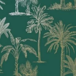 Material: Paper. Design: Palm Tree. Design Repeat: 53m. Easy Application, Offset Pattern Match, Paste the Paper. Finish: Matte, Metallic, Smooth.