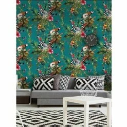 HOLDEN DECOR Teal Multicoloured Lemur Wallpaper Monkeys Flowers Floral Trees Animals Holden