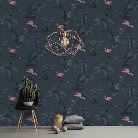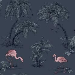 Design: Flamingo, Palm Tree. Design Repeat: 53cm. Durable, Heavyweight. Easy Application, Offset Pattern Match, Paste the Paper.
