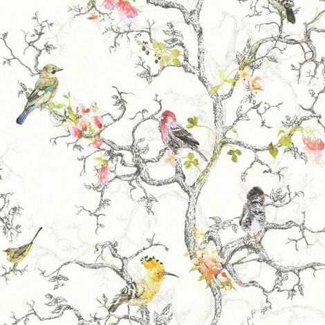 Design: Birds, Branch, Flowers. Design Repeat: 52cm. Easy Application, Offset Pattern Match, Paste the Paper. Finish: Matte, Metallic.