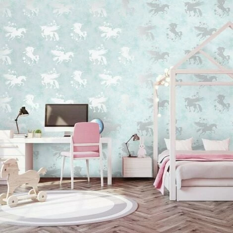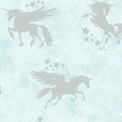 Design: Iridescent, Silhouette, Star, Unicorn. Design Repeat: 53cm. Easy Application, Offset Pattern Match, Paste the Paper. Finish: Metallic.