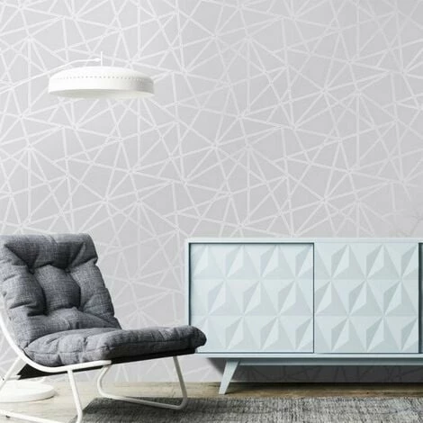 Width: 53cm. Length: 10m. Design: Geometric, Metallic, Triangle. Design Repeat: 53cm. Easy Application, Offset Pattern Match, Paste the Paper. Finish: Matte.