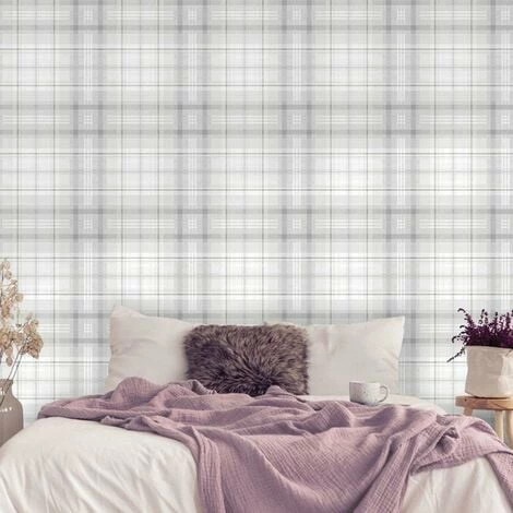 Material: Vinyl. Design: Tartan. Design Repeat: 21in. Finish: Chalky. Easy Application, Paste the Wall, Straight Pattern Match.