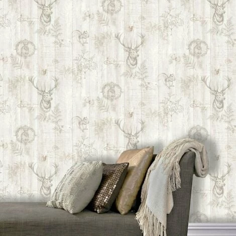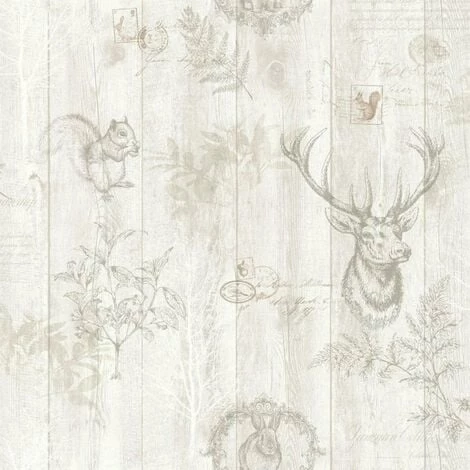 Design: Metallic, Rabbit, Squirrel, Stag, Wood Panel. Design Repeat: 53cm. Easy Application, Offset Pattern Match, Paste the Paper.