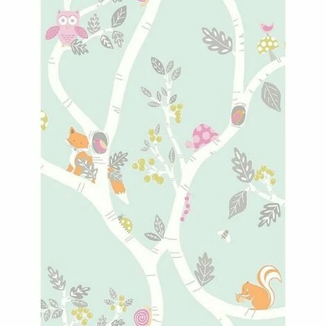 Design: Animals, Birds, Leaves, Trees, Woodland. Design Repeat: 53cm. Easy Application, Offset Pattern Match, Paste the Paper.