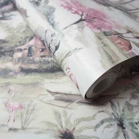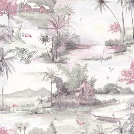 Add a touch of nature to your living space with this gorgeous jungle scene wallpaper from Holden. This design features a lovely naturistic print featuring jungle animals, in a pink and grey colourway. Finished on a smooth paper background for a truly mesmerising wallcovering.