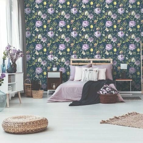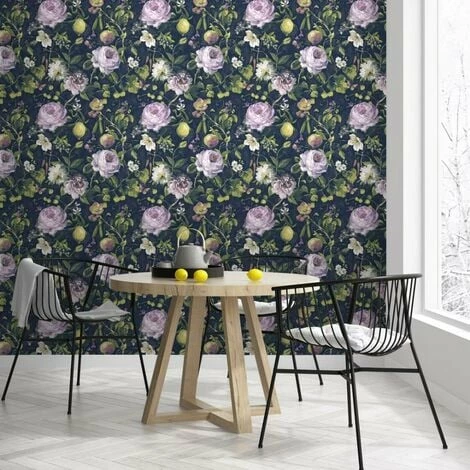 Add a touch of nature to your living space with this gorgeous Mirabelle wallpaper from Holden. This design features a lovely floral garden print in navy and green tones, finished on a smooth paper background for a truly mesmerising wallcovering.