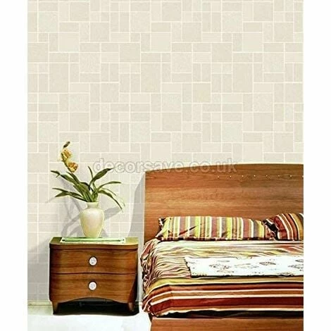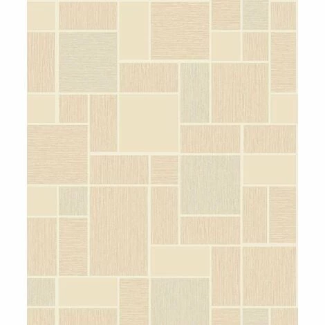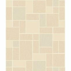 An modern style beige tile wallpaper with white grout effect. Although mostly beige, some of the tiles are cream and have a sparkling glitter effect. This wallcovering is perfect for a kitchen and bathroom as it can withstand higher levels of moisture and steam than a standard wallpaper.