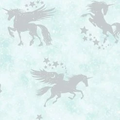 This Iridescent unicorns wallpaper is a magical wallpaper that features a cloudy colour background with metallic unicorns and stars. Ideal for playrooms and children’s bedrooms. This high quality wallpaper could be used to create a feature wall or to decorate an entire room. Additional Product Information: Pattern Repeat: 53/26.5cm Pattern Match: Offset Match Wallpaper Type: Paper Wallpaper Finish: Flat Durability: Washable Roll Length: 10m Roll Width: 53cm Roll Coverage is 5.3 Square Metres Application: Paste the Paper