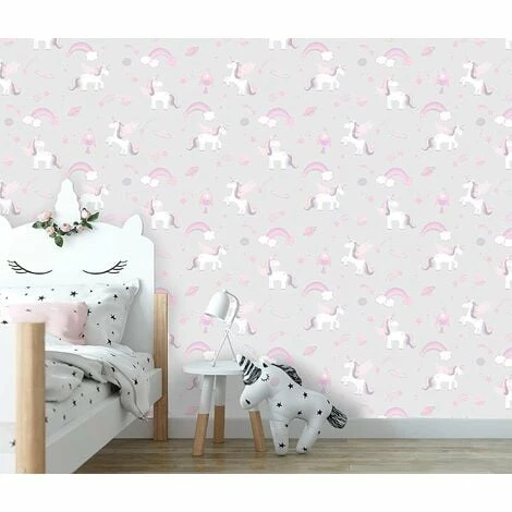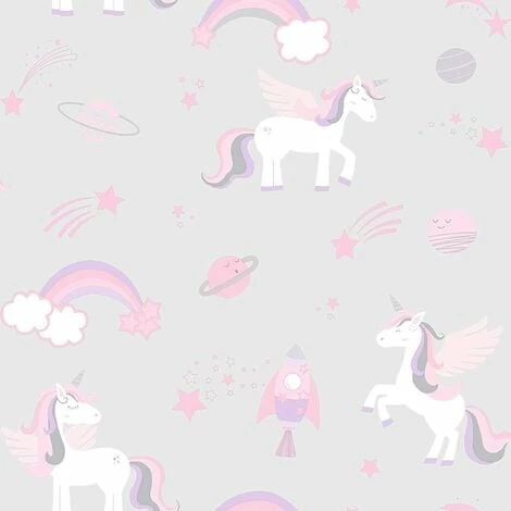This gorgeous glittery wallpaper features unicorns, rockets, rainbows, planets, stars and clouds. Ideal for playrooms and children’s bedrooms. This high quality wallpaper could be used to create a feature wall or to decorate an entire room. Additional Product Information: Pattern Repeat: 53/26.5cm Pattern Match: Offset Match Wallpaper Type: Paper Wallpaper Finish: Flat Durability: Washable Roll Length: 10m Roll Width: 53cm Roll Coverage is 5.3 Square Metres Application: Paste the Paper