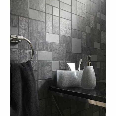 Add a touch of class to your living space with this stunning tile effect wallpaper from YöL. This design features a modern tile effect print with metallic detail throughout, finished on a textured vinyl background for a truly mesmerising wallcovering.