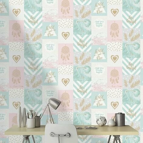This Life Is Beautiful wallpaper by Holden Decor is a metallic wallpaper that will be a great addition to any room or used on a feature wall. This eye-catching wallpaper has a stylish design and is sure to make a welcome addition to any room. The wallpaper is inspired by dreamcatchers, hearts, feathers, inspirational quotes, polka dots and marble patterned backdrops