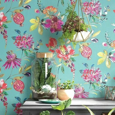 This Holden Décor Melgrano Wallpaper is a great way to inject some colour into your home this season. The wallpaper features a lively floral design for a great look. It is brought to life in a vibrant colour scheme on a soft teal background and is completed with metallic highlights for an elegant finish. This high quality wallpaper could be used to create a feature wall or to decorate an entire room. Additional Product Information: Pattern Repeat: 53/26.5cm Pattern Match: Offset Match Wallpaper Type: Paper Wallpaper Finish: Flat Durability: Spongeable Roll Length: 10m Roll Width: 53cm Roll Coverage is 5.3 Square Metres Application: Paste the Paper