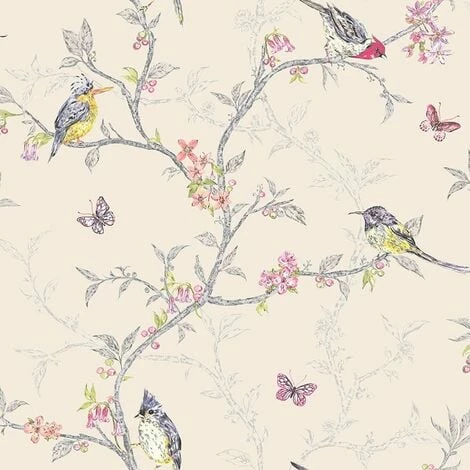 This striking wallpaper features beautiful birds and butterflies amongst an intricate branch and flower design. The branches feature mica highlights to add a stunning glistening effect. The design is printed on to luxury heavyweight paper to ensure durability and a quality finish. Easy to apply, this wallpaper will look great when used to decorate a whole room or to create a feature wall. This high quality wallpaper could be used to create a feature wall or to decorate an entire room. Additional Product Information: Pattern Repeat: 53/26.5cm Pattern Match: Offset Match Wallpaper Type: Paper Wallpaper Finish: Flat Durability: Washable Roll Length: 10m Roll Width: 53cm Roll Coverage is 5.3 Square Metres Application: Paste the Paper