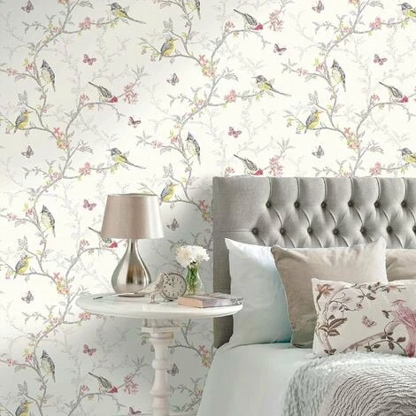 This striking wallpaper features beautiful birds and butterflies amongst an intricate branch and flower design. The branches feature mica highlights to add a stunning glistening effect. The design is printed on to luxury heavyweight paper to ensure durability and a quality finish. Easy to apply, this wallpaper will look great when used to decorate a whole room or to create a feature wall. This high quality wallpaper could be used to create a feature wall or to decorate an entire room. Additional Product Information: Pattern Repeat: 53/26.5cm Pattern Match: Offset Match Wallpaper Type: Paper Wallpaper Finish: Flat Durability: Washable Roll Length: 10m Roll Width: 53cm Roll Coverage is 5.3 Square Metres Application: Paste the Paper