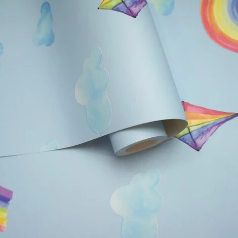 This brilliant Rainbows and Flying Kites wallpaper from Holden’s Kids range is a sure way to add a touch of class and style to your walls. Features prints of colourful rainbows and clouds throughout, set on a lovely blue background a truly mesmerising wallpaper.