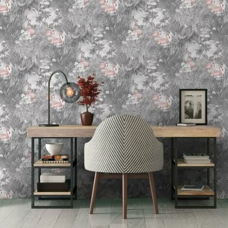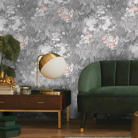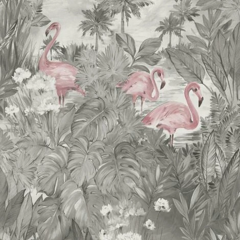 Add a touch of nature to your living space with this gorgeous flamingo wallpaper from Holden. This design features a lovely nature and flamingos print in multicolour or grey tones with matt detail throughout, finished on a smooth premium quality background for a truly mesmerising wallcovering.