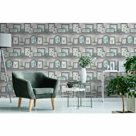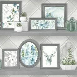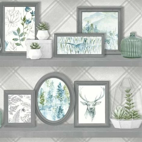The Holden Decor Stag Frames Grey/ Teal Wallpaper is an easy way to add a dash of colour to your walls. This striking wallpaper is sure to make a welcome addition to your home. Features images of wild animals including stags, pheasants and flowers in shades of teal. Set in a variety of differently shaped frames on a grey checked background for a truly mesmerising wallpaper.