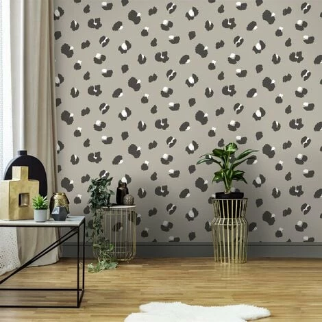 Transform your living space with this amazing large leopard spot wallpaper from Holden Décor. Features a stunning leopard spot print with throughout, finished in a taupe colourway with black and grey detail for a truly mesmerising wallcovering.