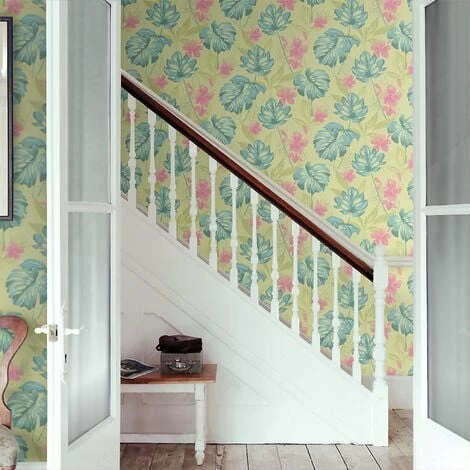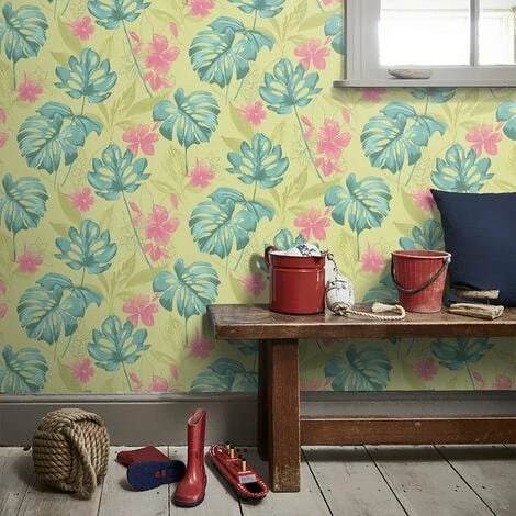 The Holden Panama Lime/ Teal Wallpaper is an easy way to add a dash of colour to your walls. This striking wallpaper is sure to make a welcome addition to your home. Features an exotic mix of foliage and flowers from the Mexican tropical rain forests of Panama, including the iconic large leaves of the swiss cheese plant. Shown here in the lime and teal colour way for a truly mesmerising wallpaper.