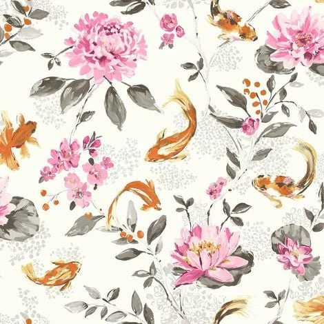 The Holden Koi Non-Woven White/ Pink Wallpaper is an easy way to add a dash of colour to your walls. This striking wallpaper is sure to make a welcome addition to your home. Featuring an all-over repeated pattern of stylised Koi carp with trailing flowers set on a contrasting white background for a truly mesmerising wallpaper.