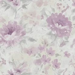 Floral Lilac Grey Wallpaper Water Colour Effect Paste The Wall Holden Decor