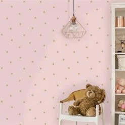 Dotty Spots Wallpaper Girls Bedroom Pink Gold Metallic Shimmer Holden Decor
