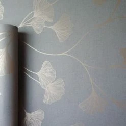 Floral Wallpaper Flowers Grey Rose Gold Metallic Shimmer Holden Decor Ginkgo