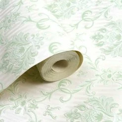 Emily Floral Damask Wallpaper Holden Decor Green Vinyl Traditional Textured