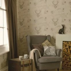 HOLDEN DECOR Holden Décor Richmond Highland Stag Wallpaper (One Size) (Charcoal/Cream)