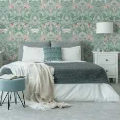 HOLDEN DECOR Holden Vintage Floral Soft Teal Vintage Retro Style Art Nouveau Smooth Wallpaper