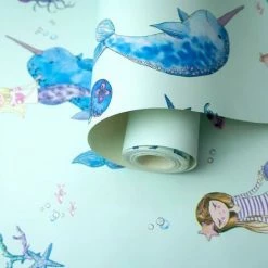 HOLDEN DECOR Narwhals Mermaids Wallpaper Holden Teal Ocean Sea Life Fish Girls Glitter