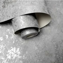 HOLDEN DECOR Obsidian Concrete Wallpaper Holden Metallic Textured Vinyl Grey Silver